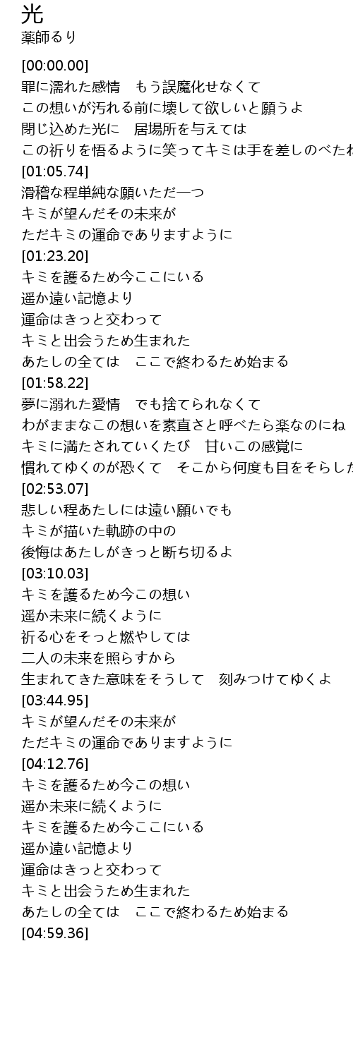 | [04:48.53] | あたしの全ては ここで終わるため始まる |