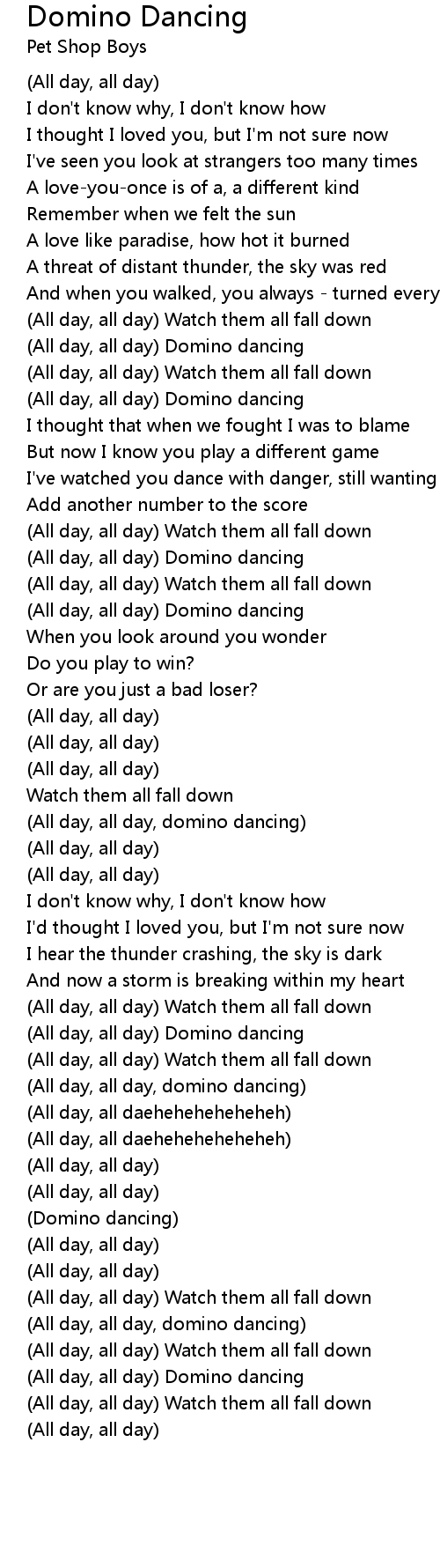 (All day, all day, domino dancing) |