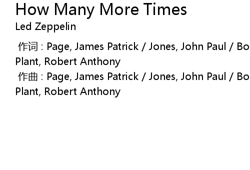 | [00:00.000] | 作词 : Page, James Patrick / Jones, John Paul / Bonham, John / Plant, Robert Anthony |
