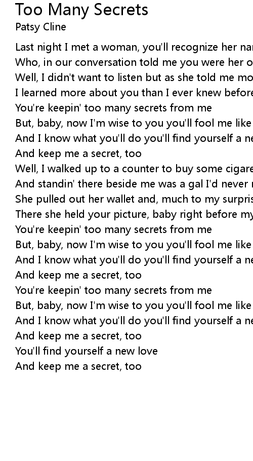 You're keepin' too many secrets from me |