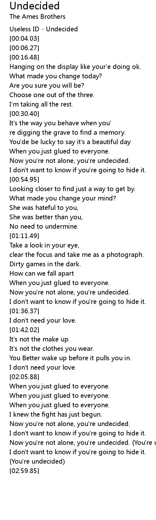 [02:45.46] Now you're not alone, you're undecided. (You're undecided)