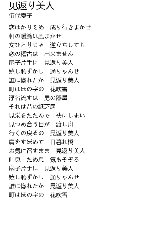 | [00:53.472] | 誰に惚れたか 見返り美人 |
