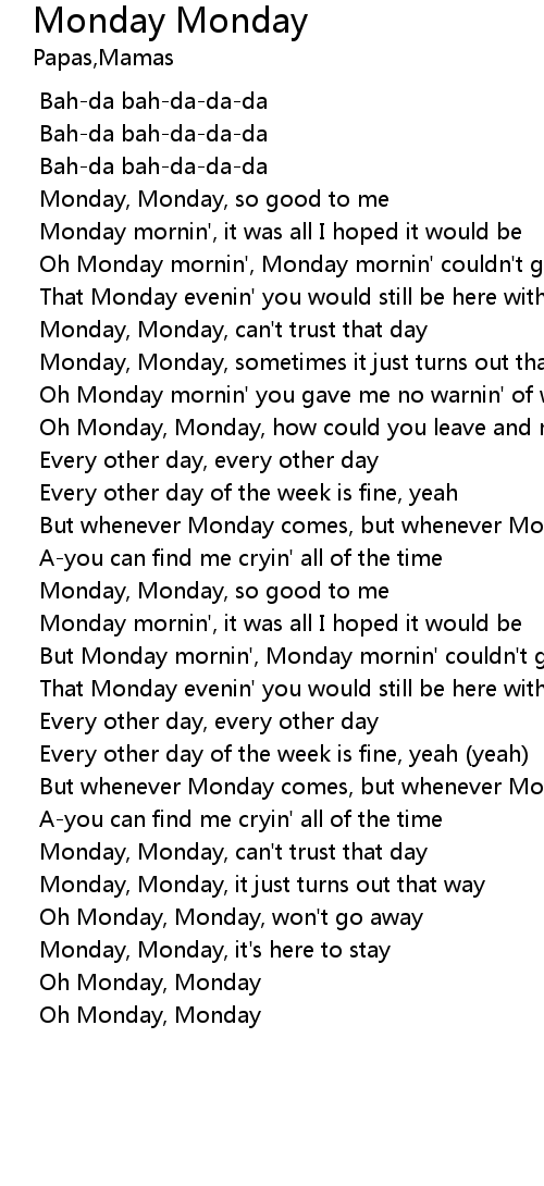 | [00:12.734] | Monday, Monday, so good to me |