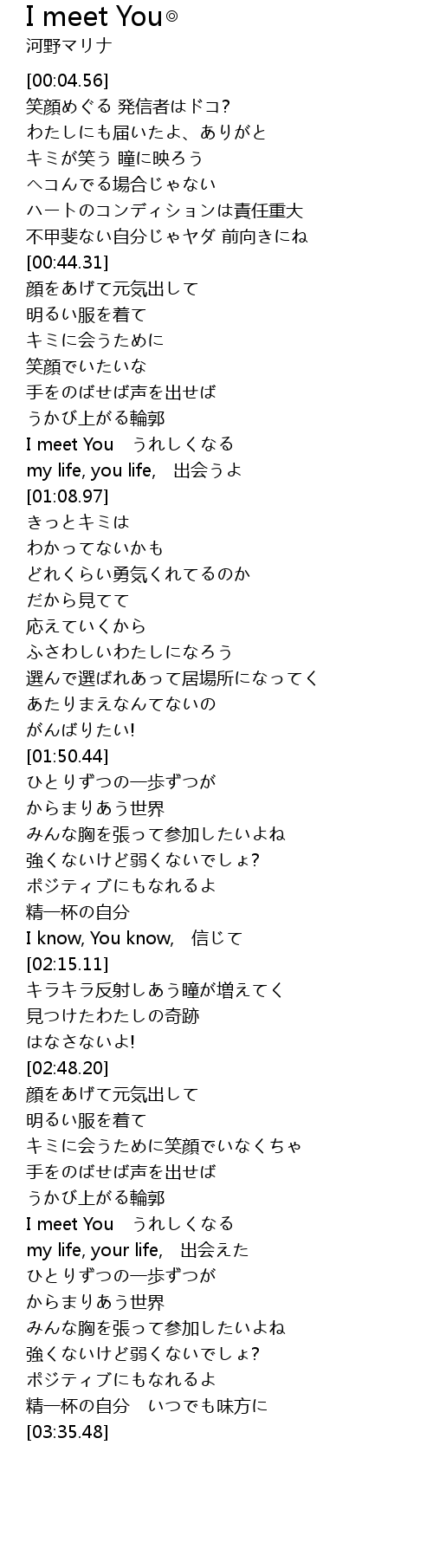 | [02:55.15] | キミに会うために笑顔でいなくちゃ |