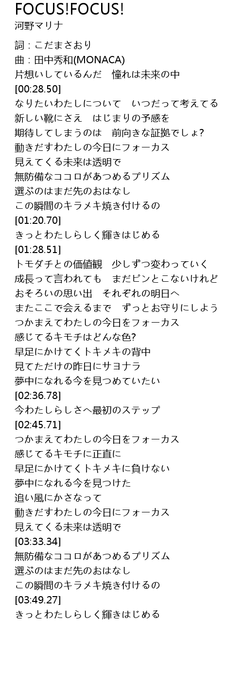 | [00:55.74] | 動きだすわたしの今日にフォーカス |