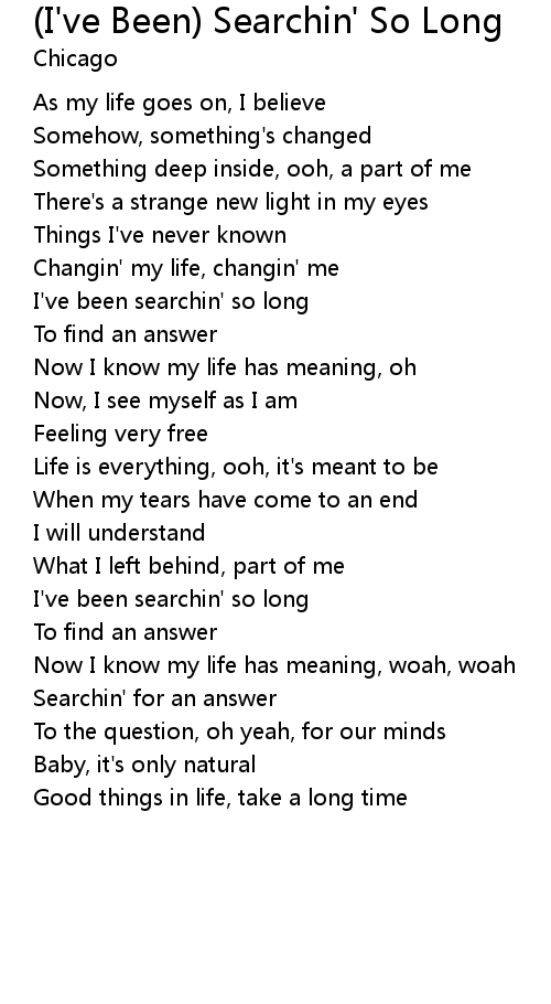 I've been searchin' so long |