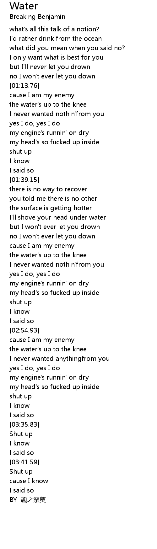 | [02:09.99] | but I won't ever let you drown |