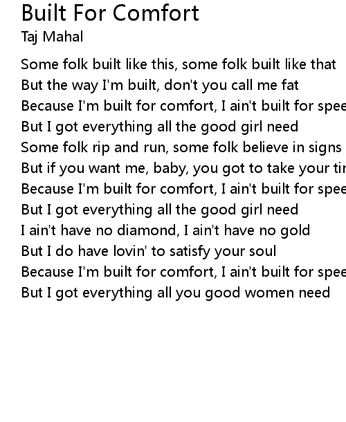Because I'm built for comfort, I ain't built for speed |