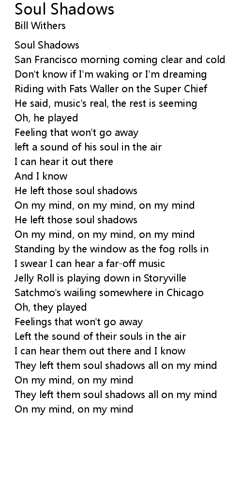 They left them soul shadows all on my mind |