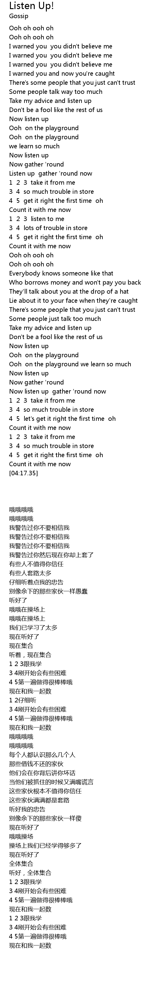 | [01:54.27] | 1 2 3 listen to me |