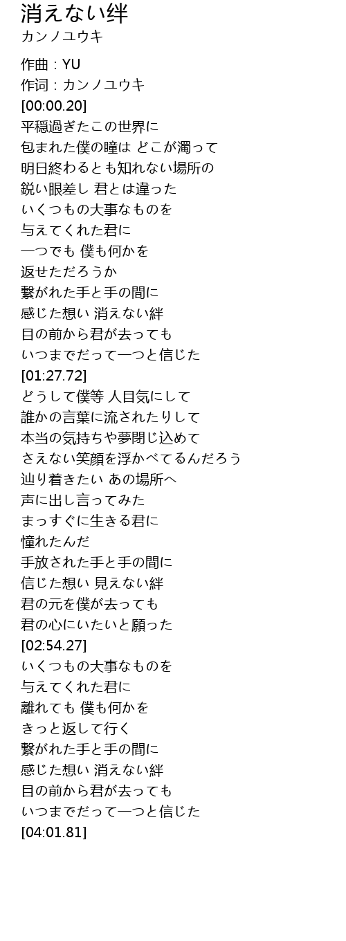 | [00:26.62] | 包まれた僕の瞳は どこが濁って |