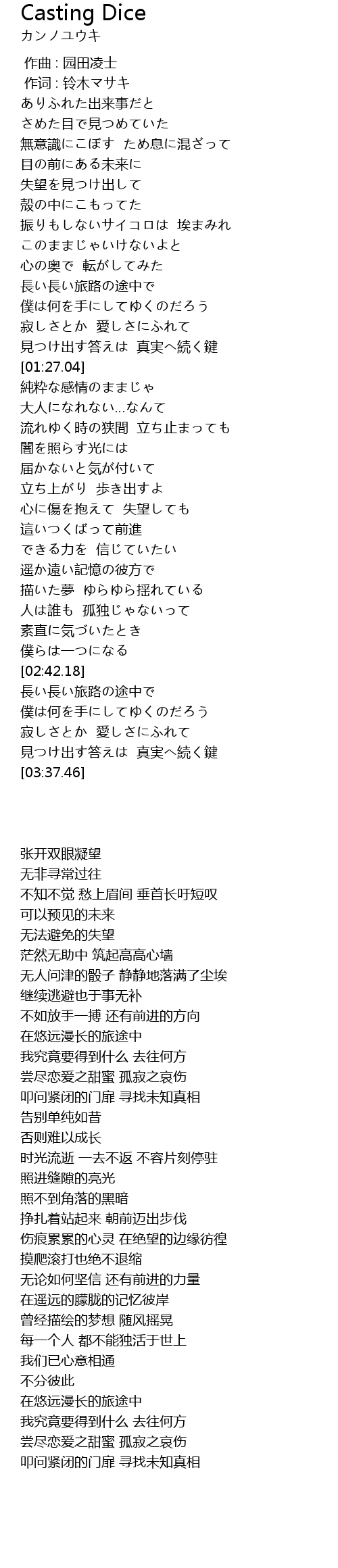 | [03:25.34] | 見つけ出す答えは 真実へ続く鍵 |
