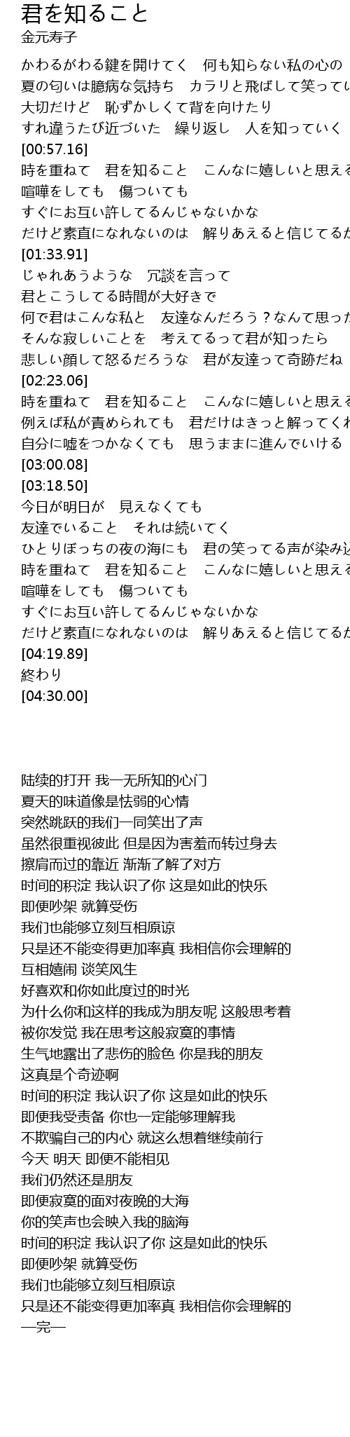 | [00:57.84] | 時を重ねて 君を知ること こんなに嬉しいと思えるから |