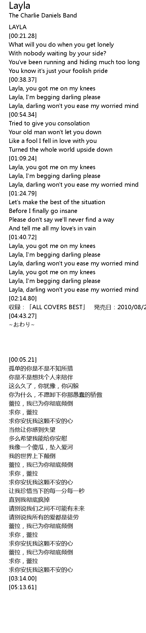 | [00:43.44] | Layla, I' m begging darling please |
