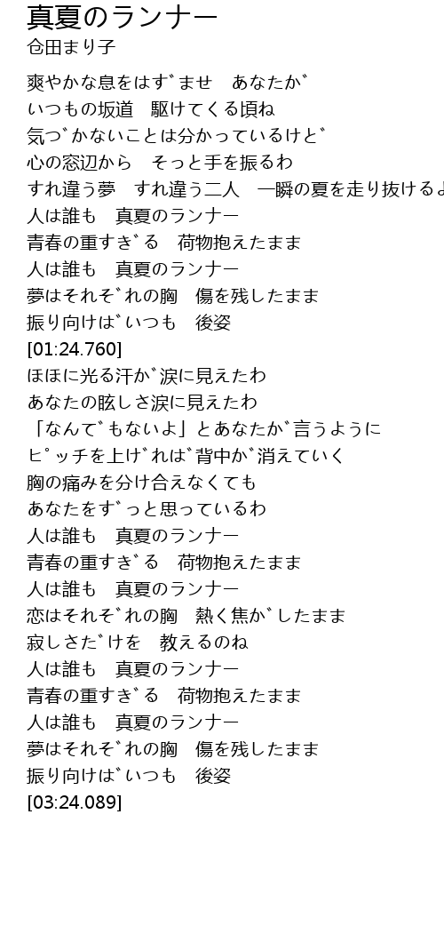 | [01:03.913] | 人は誰も 真夏のランナー |