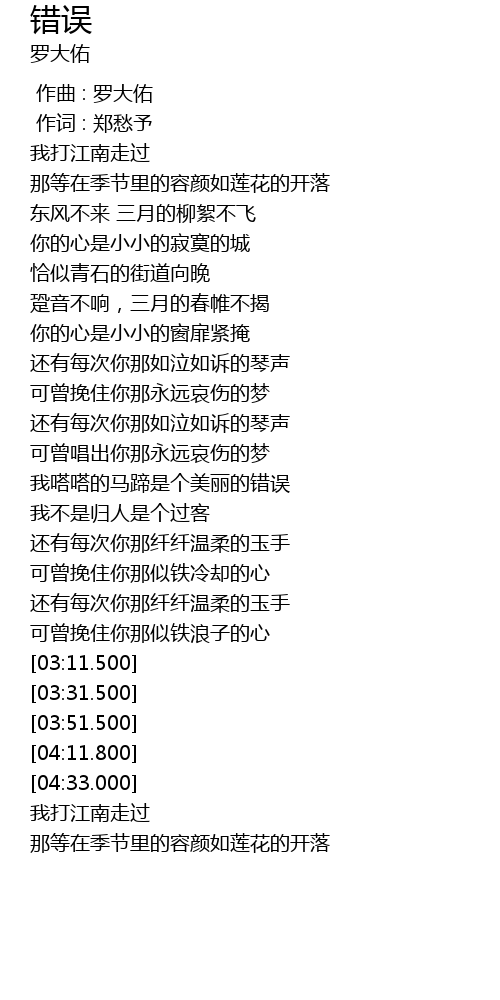 | [00:00.00] | 作曲 : 罗大佑 |