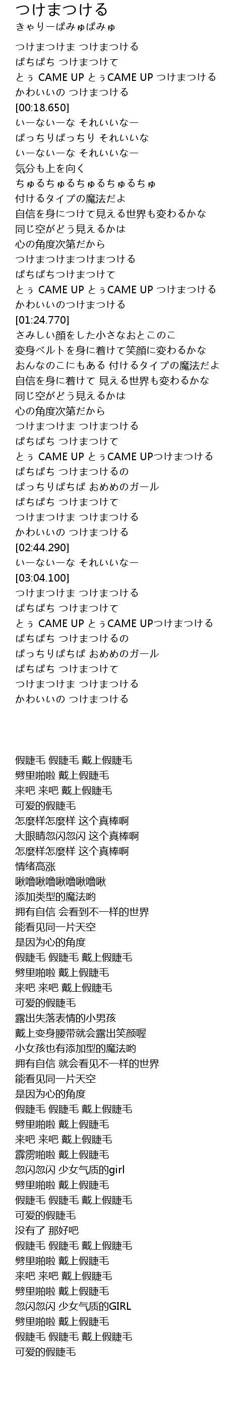 | [01:18.200] | とぅ CAME UP とぅCAME UP つけまつける |