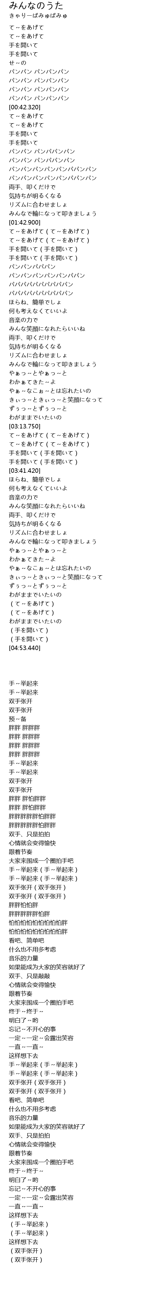 て~をあげて(て~をあげて) |