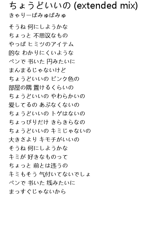 | Song | ちょうどいいの (extended mix) |