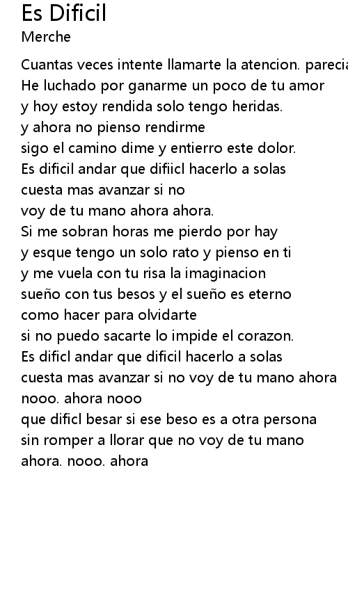 | Song | Es Dificil |