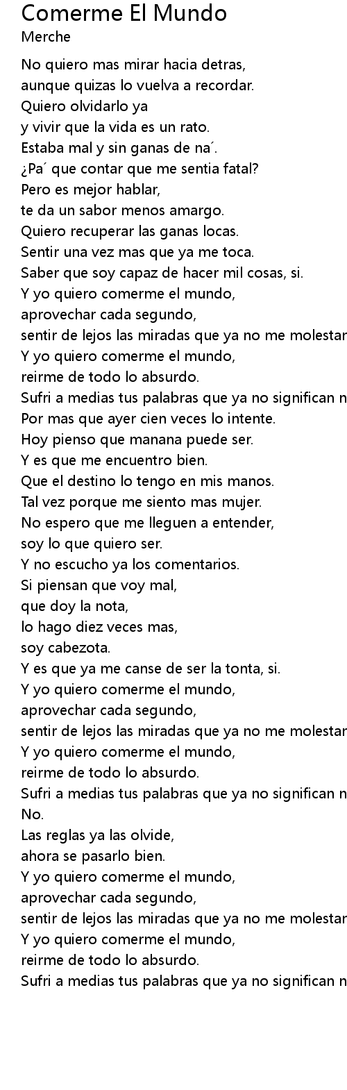 | [00:45.31] | Y yo quiero comerme el mundo, |