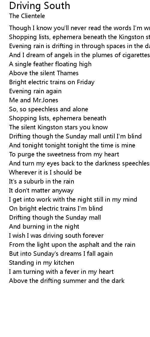 I wish I was driving south forever |