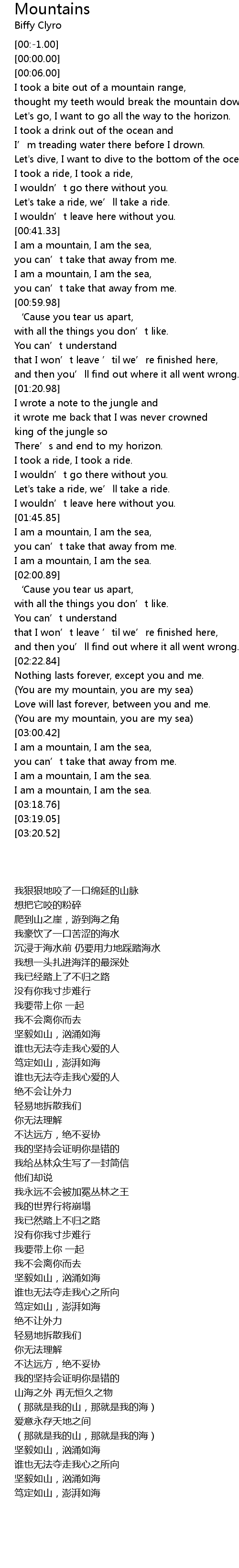 | [03:14.86] | I am a mountain, I am the sea. |