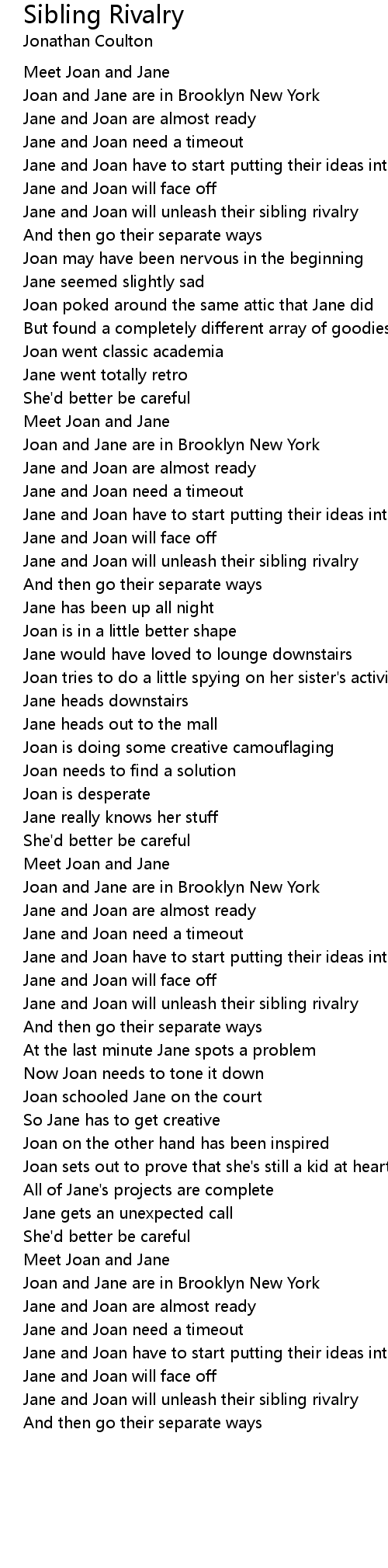 Jane and Joan need a timeout |