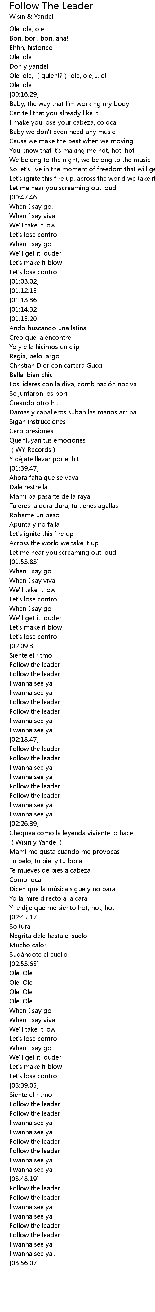 | [01:17.28][01:13.36][01:09.57][01:05.50] | follow the leader, |