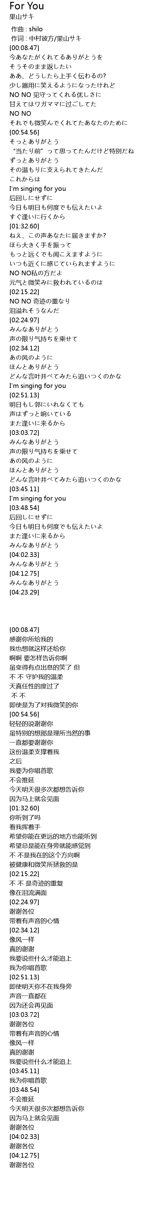 | [00:48.11] | それでも微笑んでくれてたあなたのために |