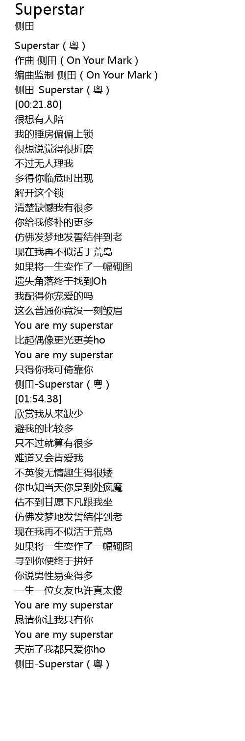 | [00:18.08] | 侧田-Superstar(粤) |