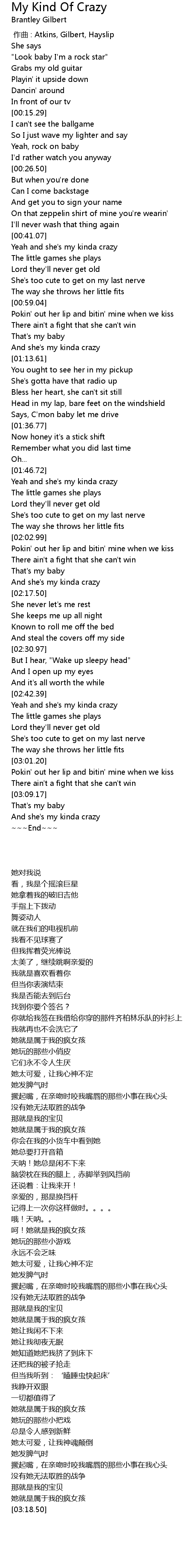 | [02:44.89] | Yeah and she' s my kinda crazy |