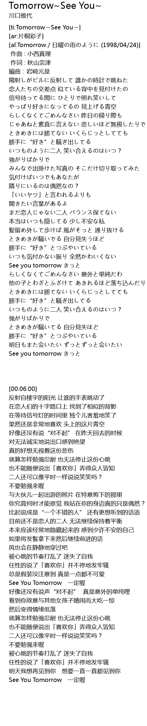| [04:33.85] | 明日もまた会いたい ずっとずっと会いたい |