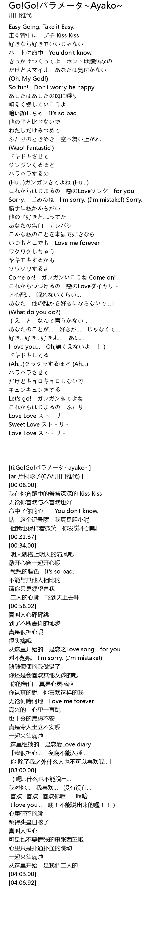 | [00:14.68] | zǒu bèi zhōng Kiss Kiss |
