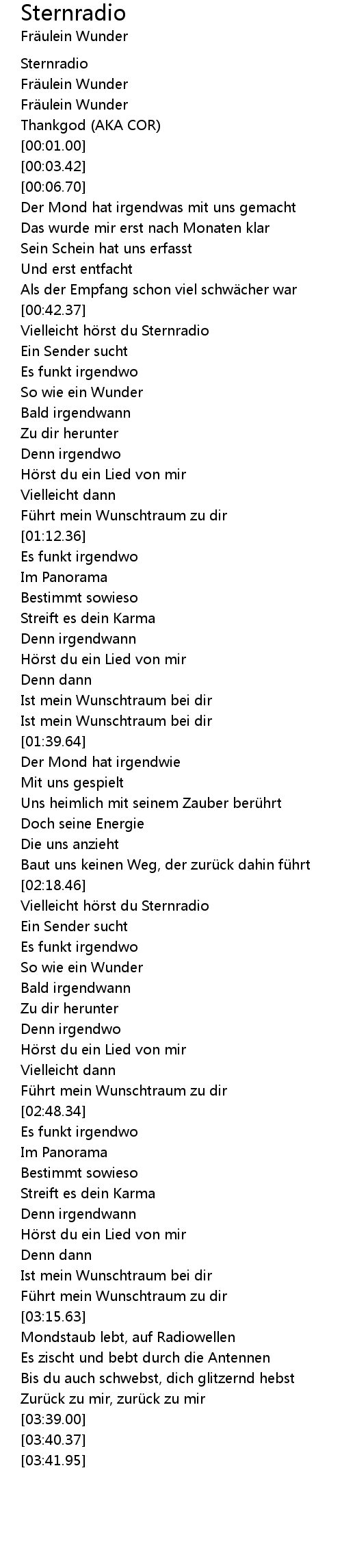 | [00:43.66] | Vielleicht h rst du Sternradio |