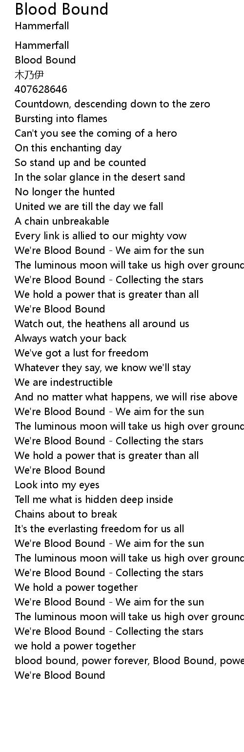 | [03:36.79] | blood bound, power forever, Blood Bound, power |