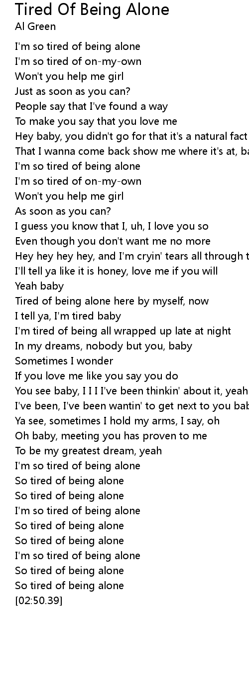 Tired Of Being Alone Lyrics