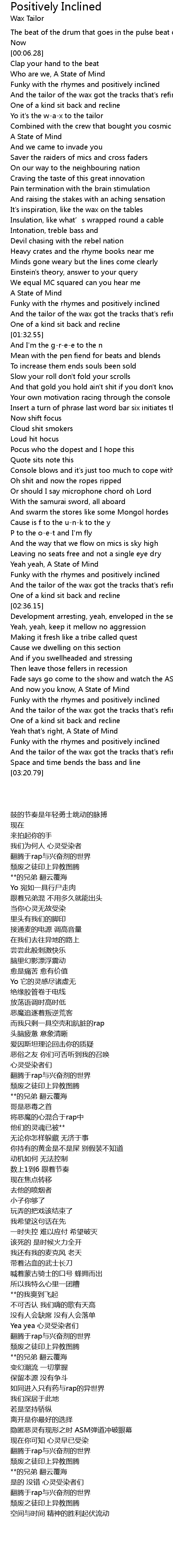 | [01:21.01] | Funky with the rhymes and positively inclined |