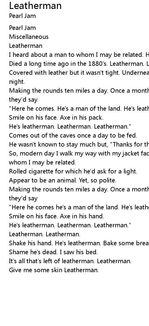 He's leatherman. Leatherman. Leatherman." |