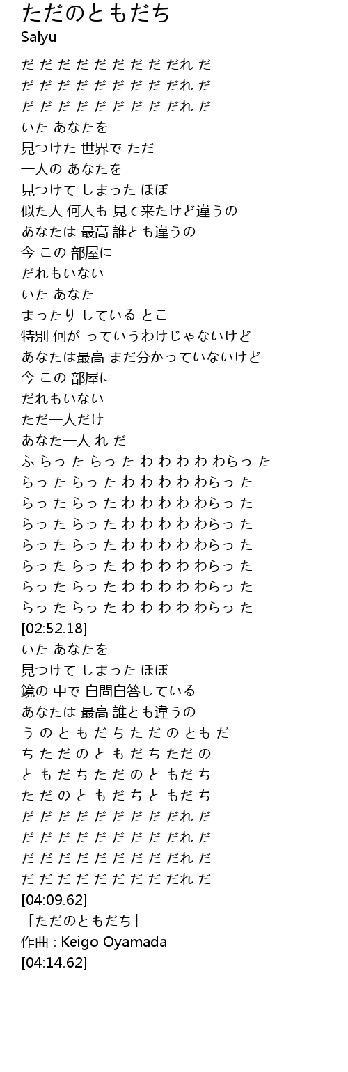 | [03:24.72] | ち た だ の と も だ ち ただ の |