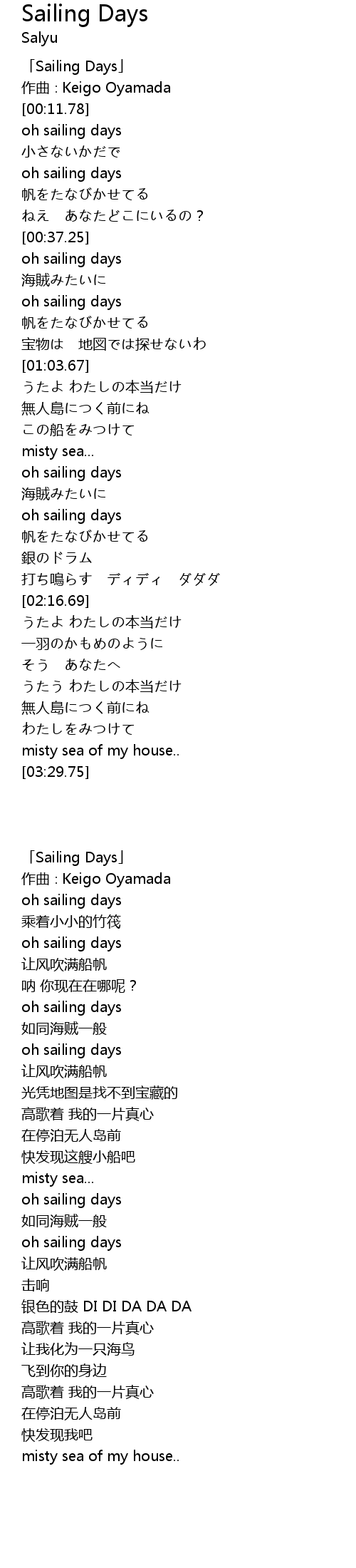 [00:03.78] 「Sailing Days」