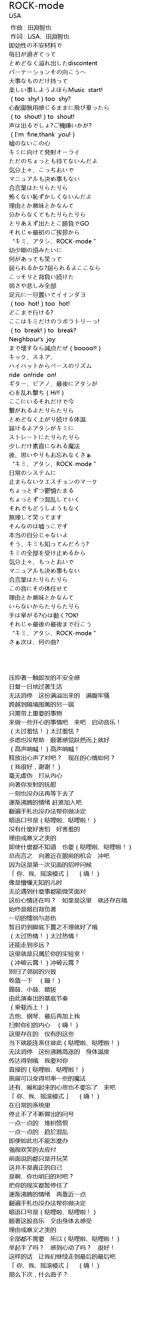 | [01:26.542] | “キミ、アタシ、ROCK-mode ” |