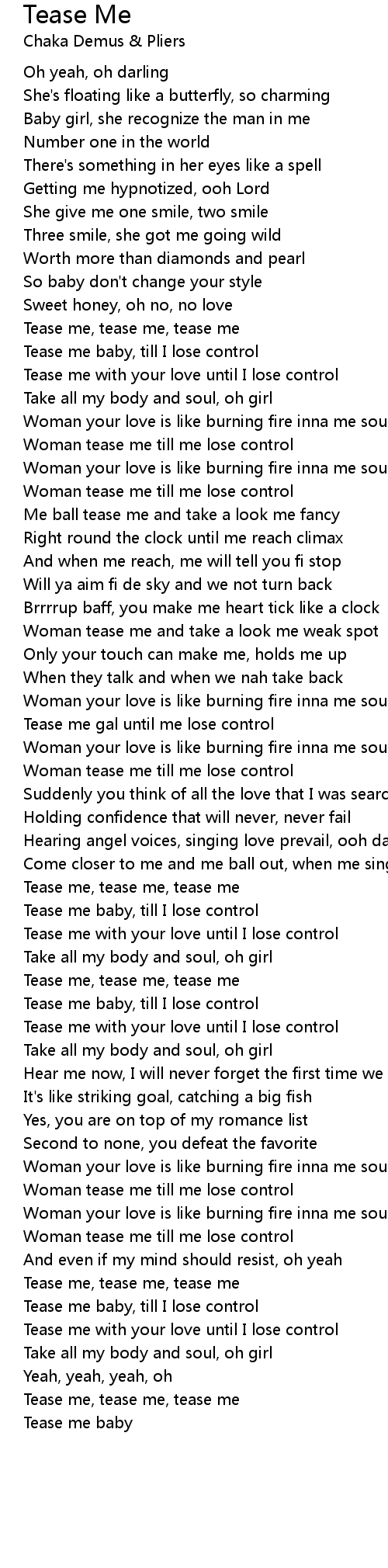Tease me gal until me lose control |