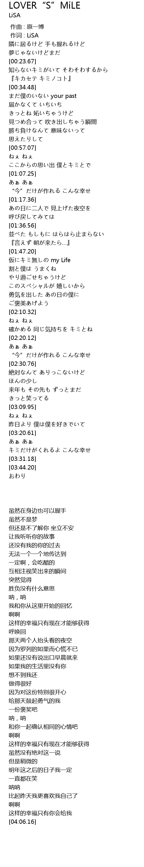 | [00:01.00] | 作词 : LiSA |