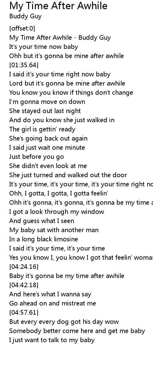 Ohh it's gonna, it's gonna, it's gonna be my time after awhile |