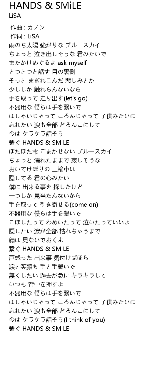 | [02:44.36] | 繋ぐ HANDS & SMiLE |