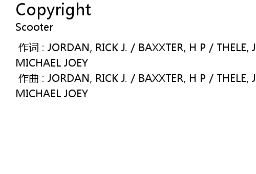 | [00:00.000] | 作曲 : JORDAN, RICK J. / BAXXTER, H P / THELE, JENS PETER / SIMON, MICHAEL JOEY |