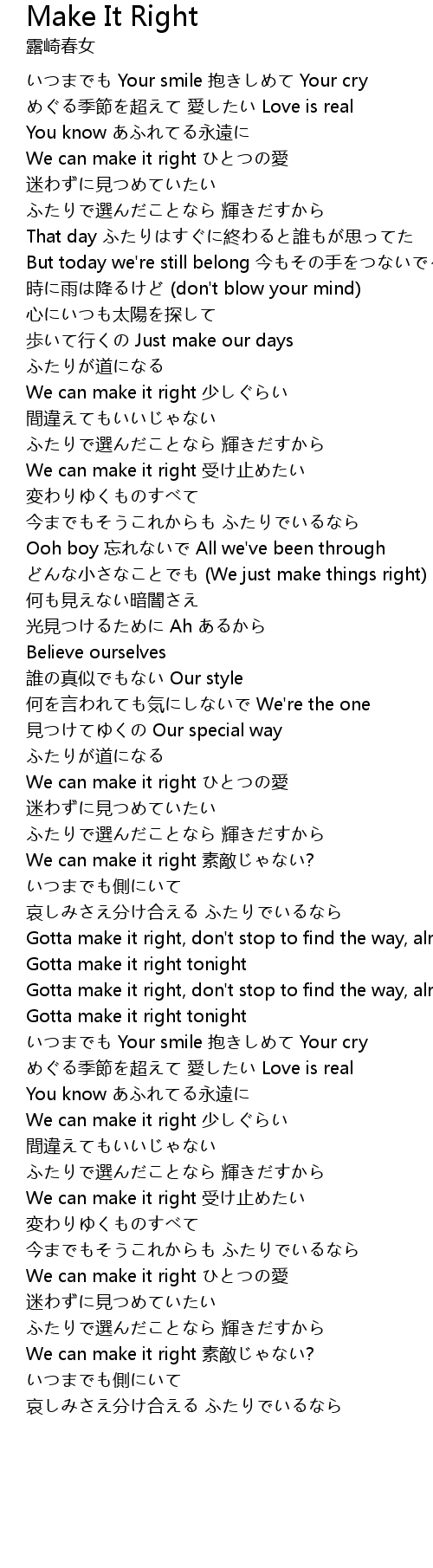 | Gotta make it right, don' t stop to find the way, alright? | |