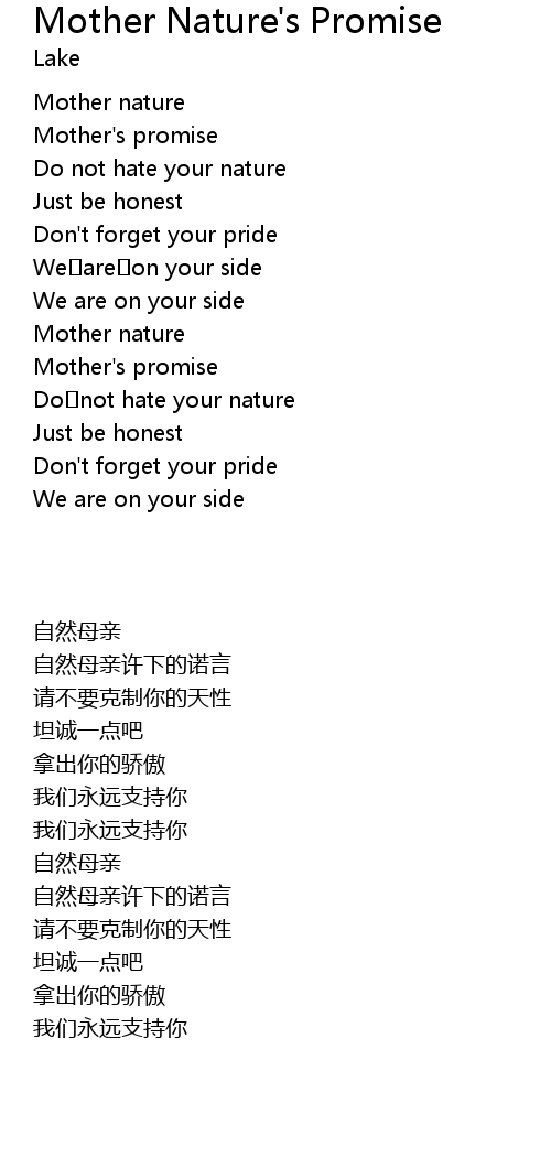 Mother Nature's Promise Lyrics