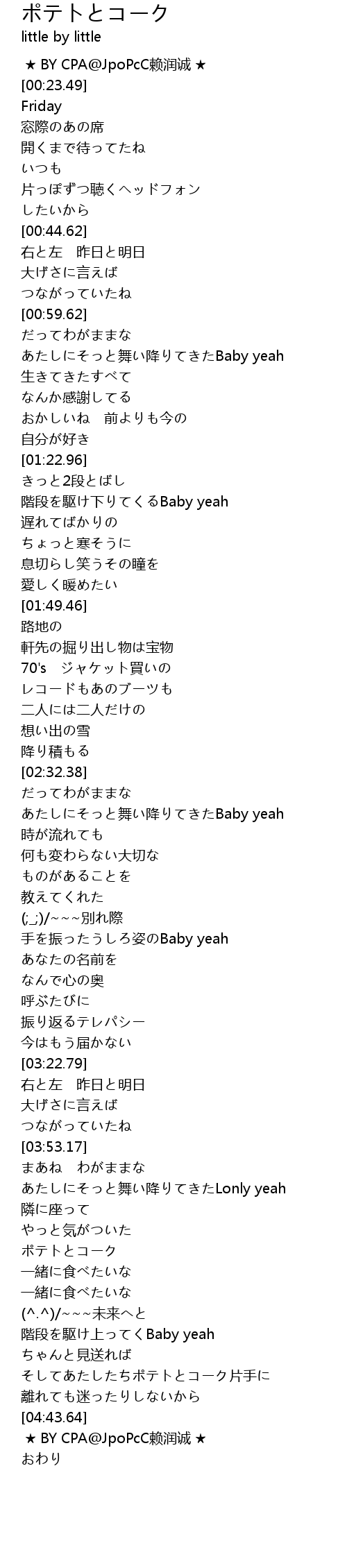 | [04:07.48] | ポテトとコーク |